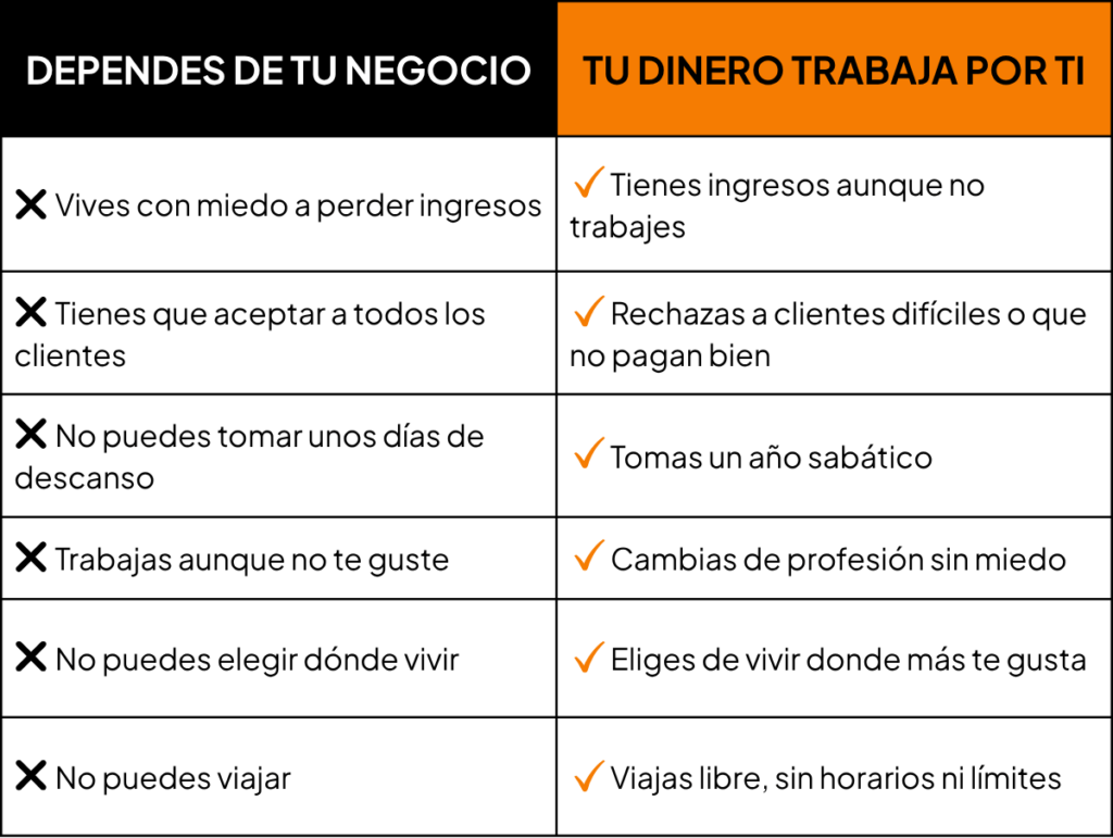 Porque mientras dependas únicamente de tu trabajo o de tu negocio, siempre tendrás un límite: tu tiempo y tu energía.
